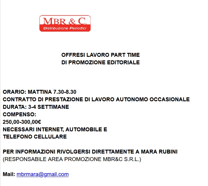 MBR & C. offre lavoro part-time di PROMOZIONE EDITORIALE.
